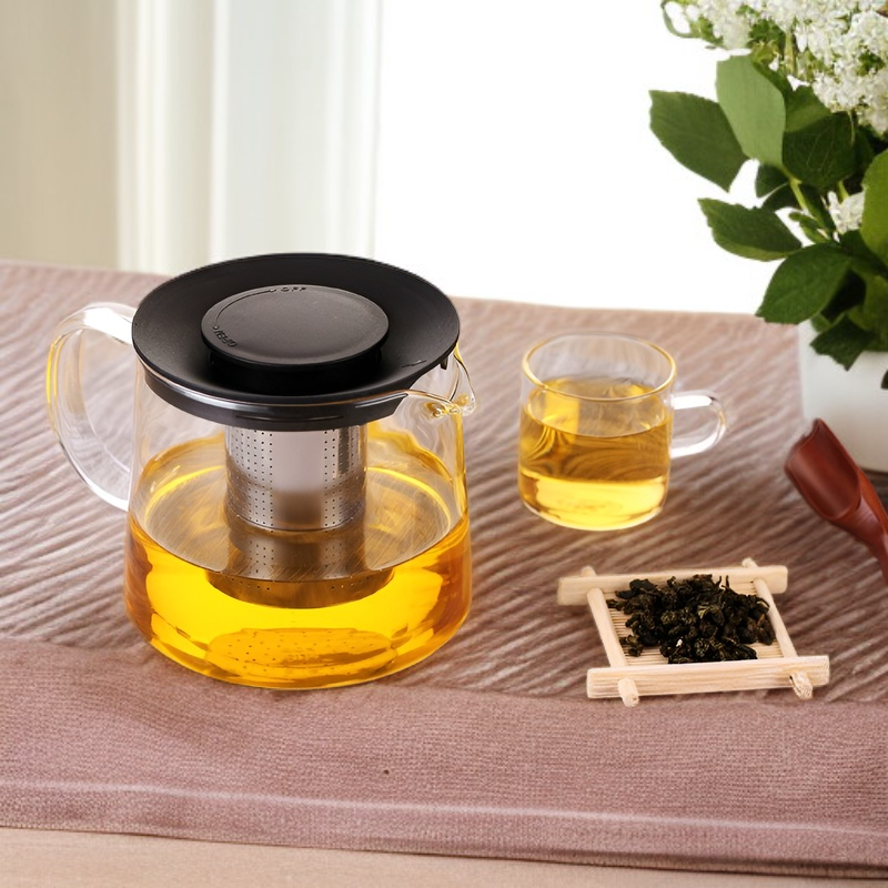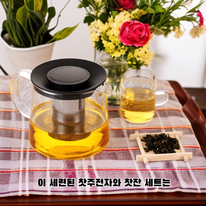 ● 내열유리로 제작되어 뜨거운 물에도 안전하게 사용 가능하며, 투명한 디자인으로 차 우림 과정을 한눈에 확인할 수 있습니다. ● 세련된 티포트와 컵 세트 구성으로 집이나 사무실에서 고급스러운 티타임을 연출할 수 있습니다. ● 넉넉한 용량과 인체공학적 손잡이 설계로 여러 잔의 차를 편리하게 우려내고 따르기에 최적화되어 있습니다. ● 분리형 스테인리스 거름망이 포함되어 있어 찻잎이나 허브차를 깔끔하게 우려낼 수 있으며, 세척도 간편합니다.
